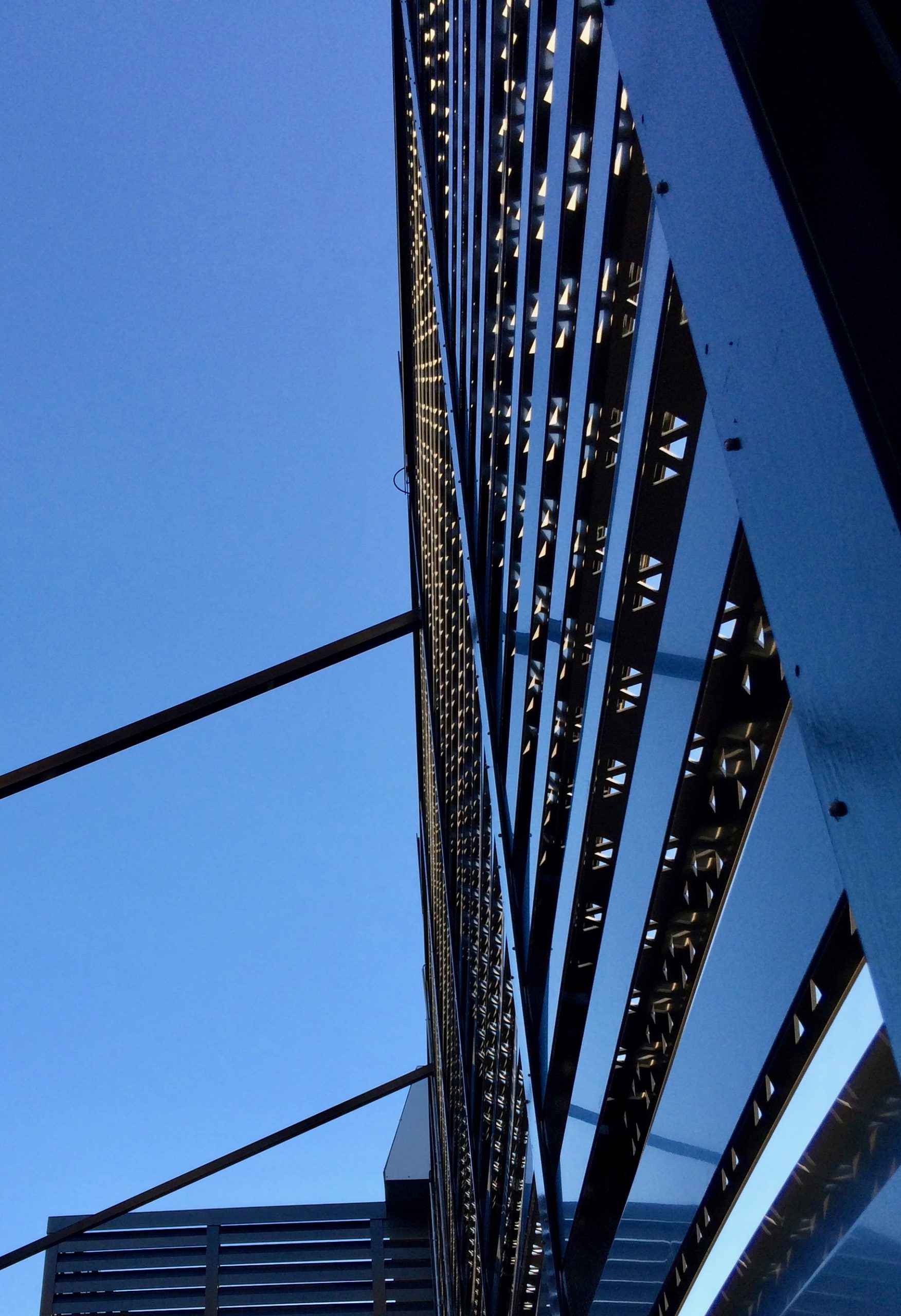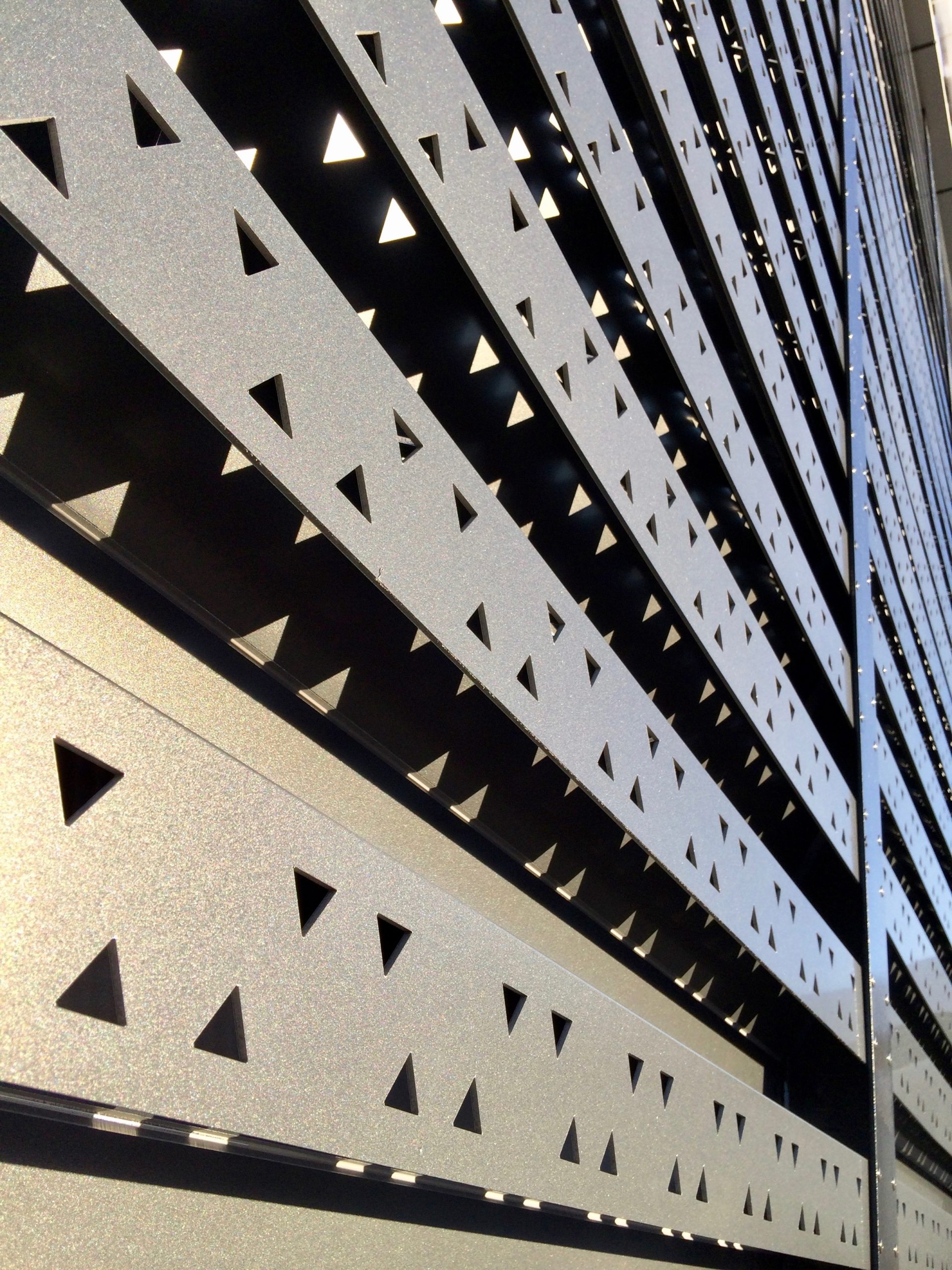 Peau du bâtiment : revêtement T.A. / bardage claire-voie / béton naturel