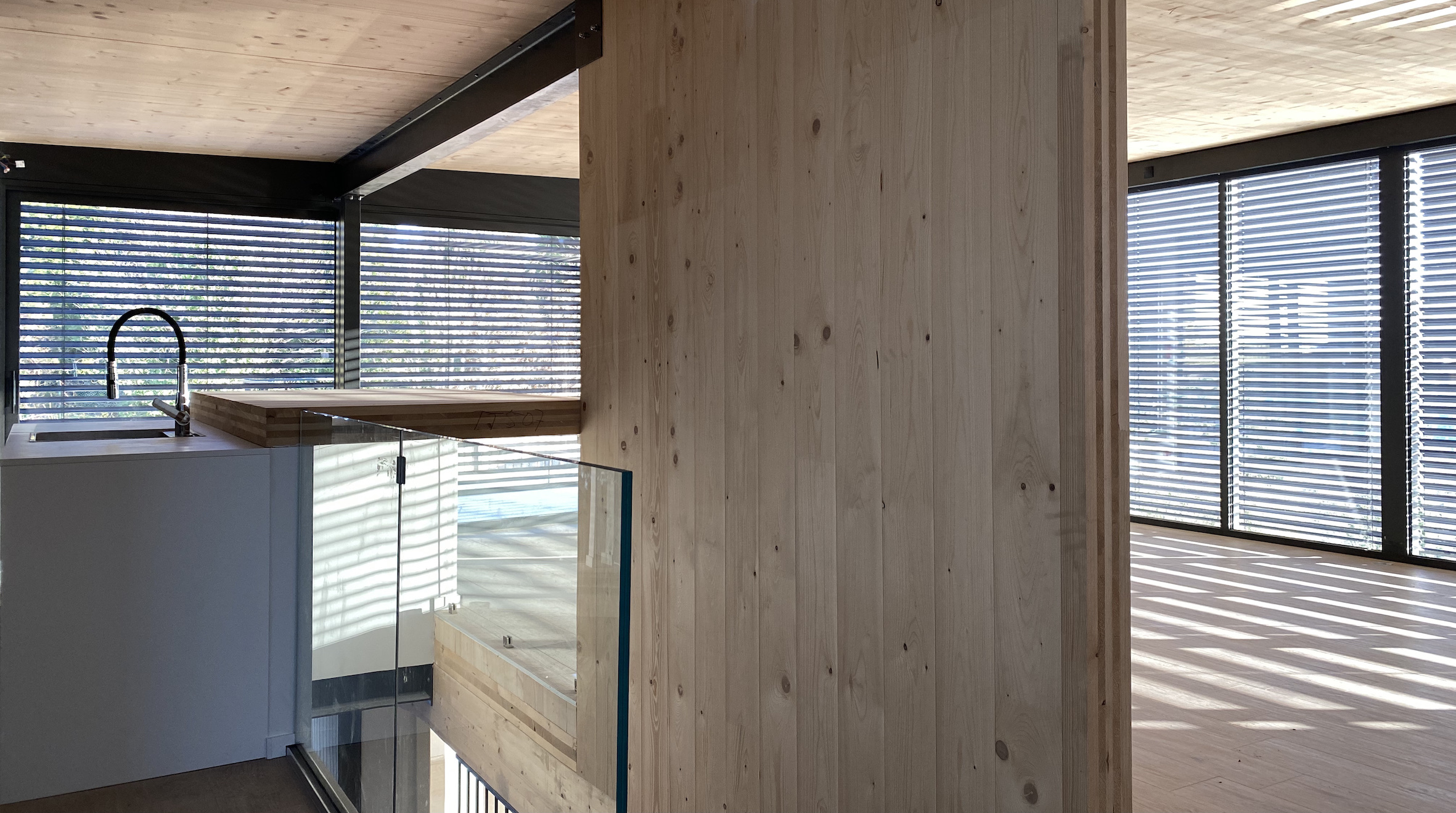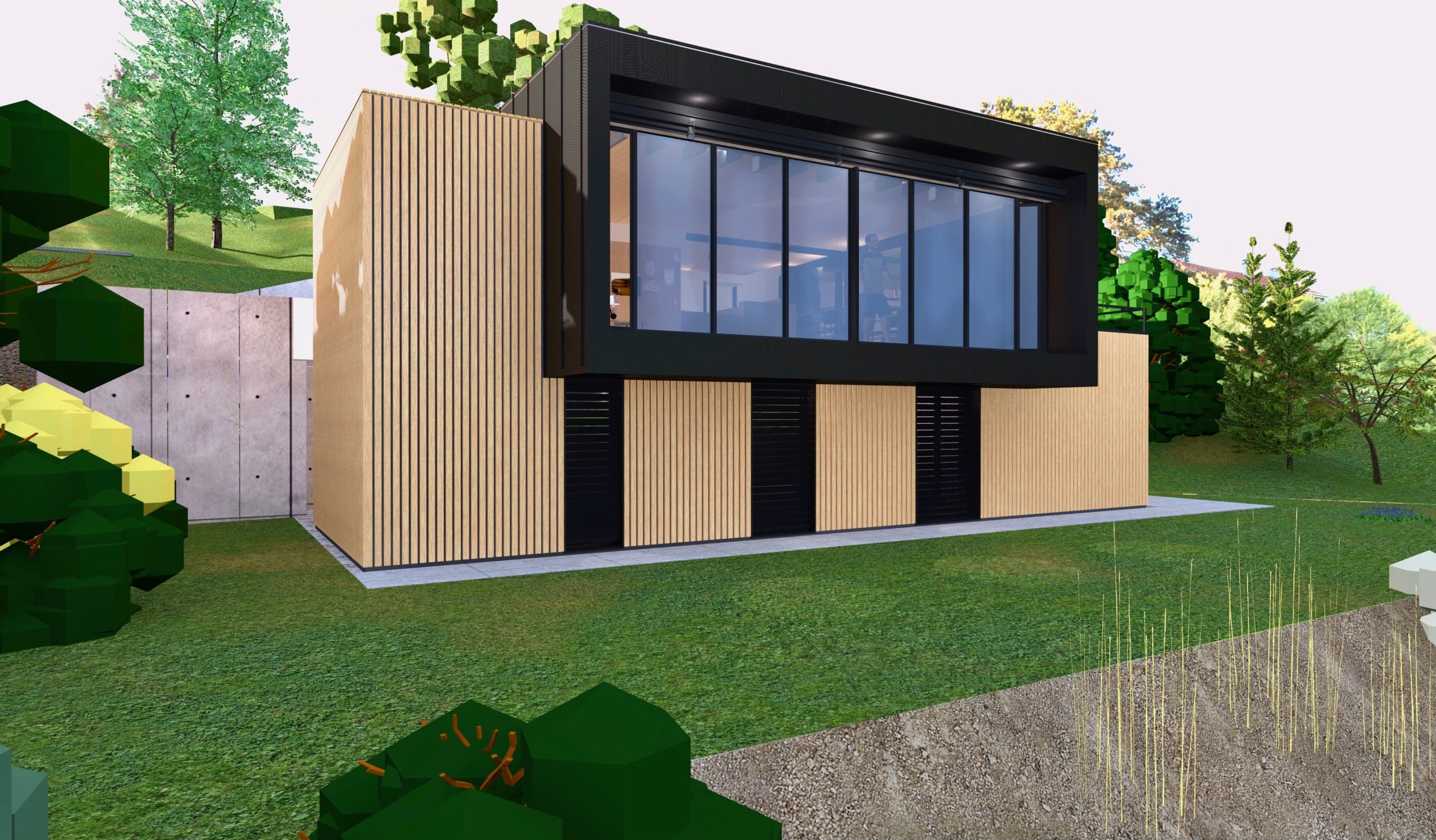 Matériaux de construction : murs préfabriqués de soutènement / socle béton / structure légère bois / Dalle massive (CLT) / structure connexe acier