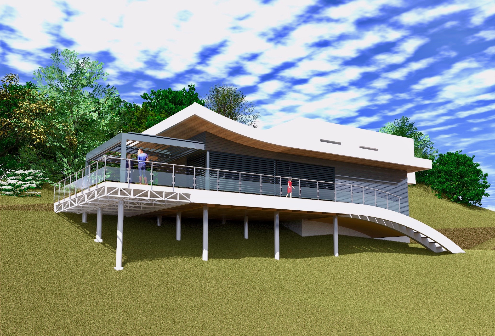 Projet Pilotis (2) Habitat Individuel Pierre Gigon 8 octobre 2021 Habitat Individuel – Montbéliard (25) – 2021-2023 Mission : complète Objet : rénovation maison individuelle Matériaux de construction : murs préfabriqués de soutènement / socle béton / structure légère bois / Dalle massive (CLT) / structure secondaire acier Peau du bâtiment : revêtement zinc noir / bardage claire-voie mélèze / béton naturel DCIM\100MEDIA\DJI_0410.JPG