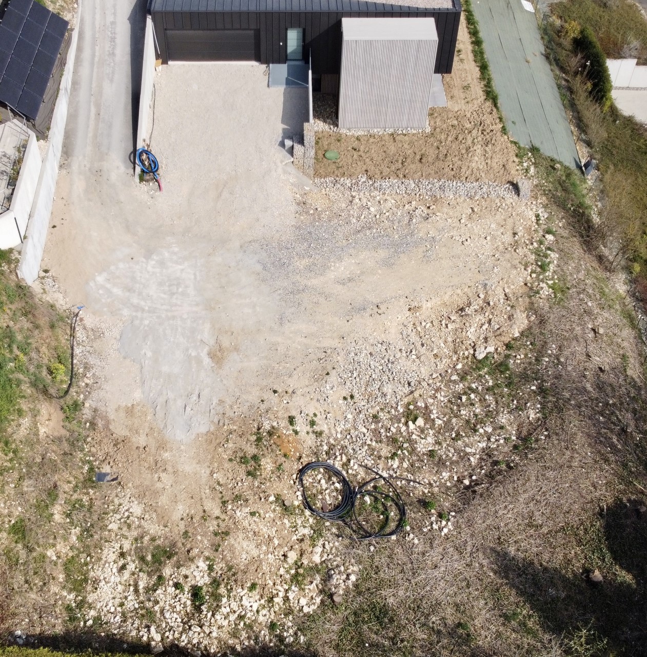 Les deux propriétés dont les jardins sont situés en front de colline à 14 mètres en dessous de la Rue Louis Pardonnet favorisent la réalisation d’une architecture de coteau par paliers dont les fonctions communes se voient toutes sensibilisées par un environnement géographique atypique et surprenant, deux architectures jumelles s’intègrent à un terrain rattachées à la rampe tel le cordon qui relie ce lieu caché à l’activité de la ville.