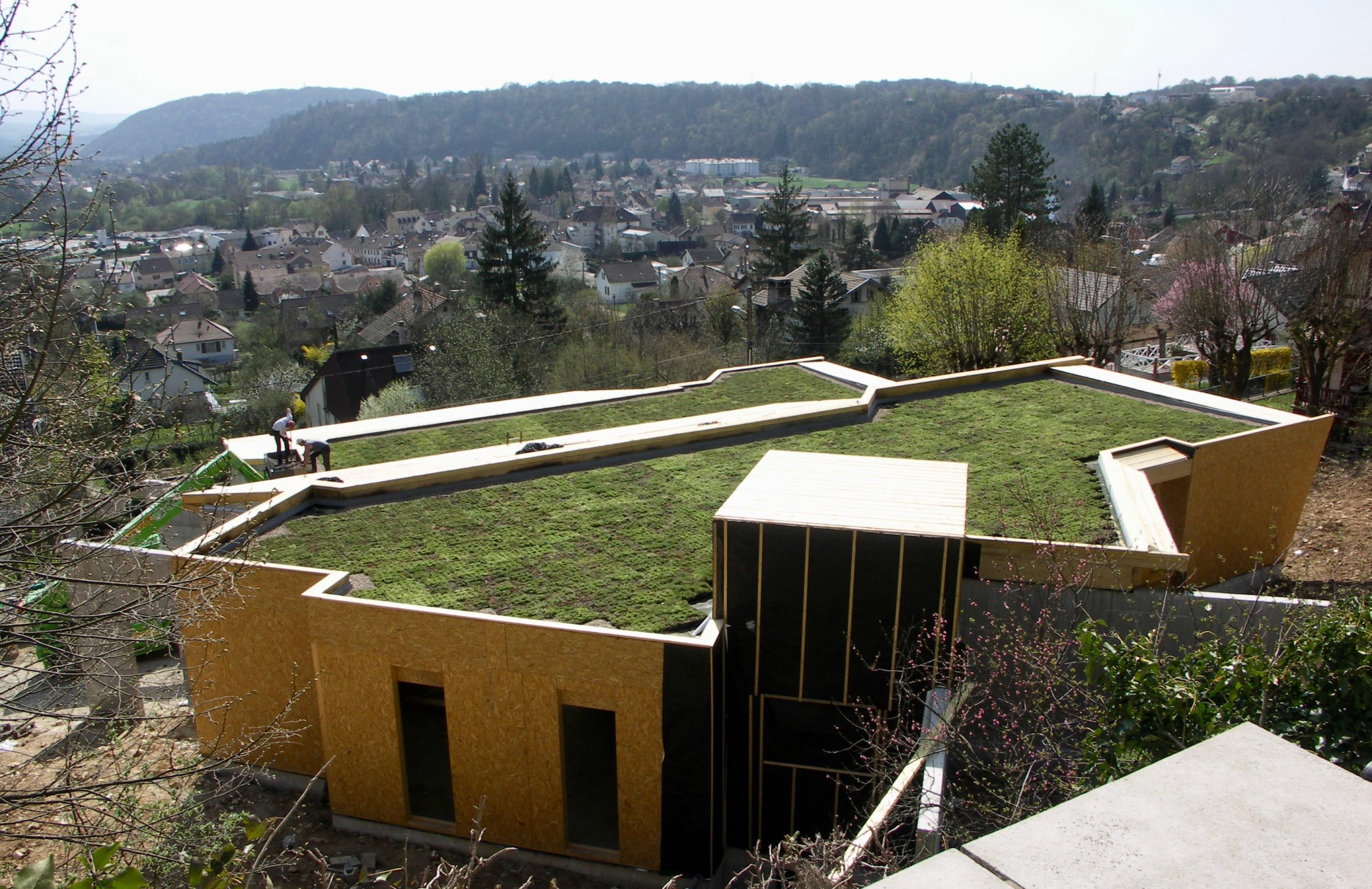 Projet Parc Sedum Habitat Groupé Pierre Gigon 8 septembre 2021 Habitat Groupé – Montbéliard (25) – 2008-2010 Mission : complète Objet : maison groupé neuve Matériaux de construction : murs préfabriqués de soutènement / socle béton / structure légère bois / Dalle massive (CLT) / structure secondaire acier Peau du bâtiment : revêtement zinc noir / bardage claire-voie mélèze / béton naturel KONICA MINOLTA DIGITAL CAMERAKONICA MINOLTA DIGITAL CAMERA