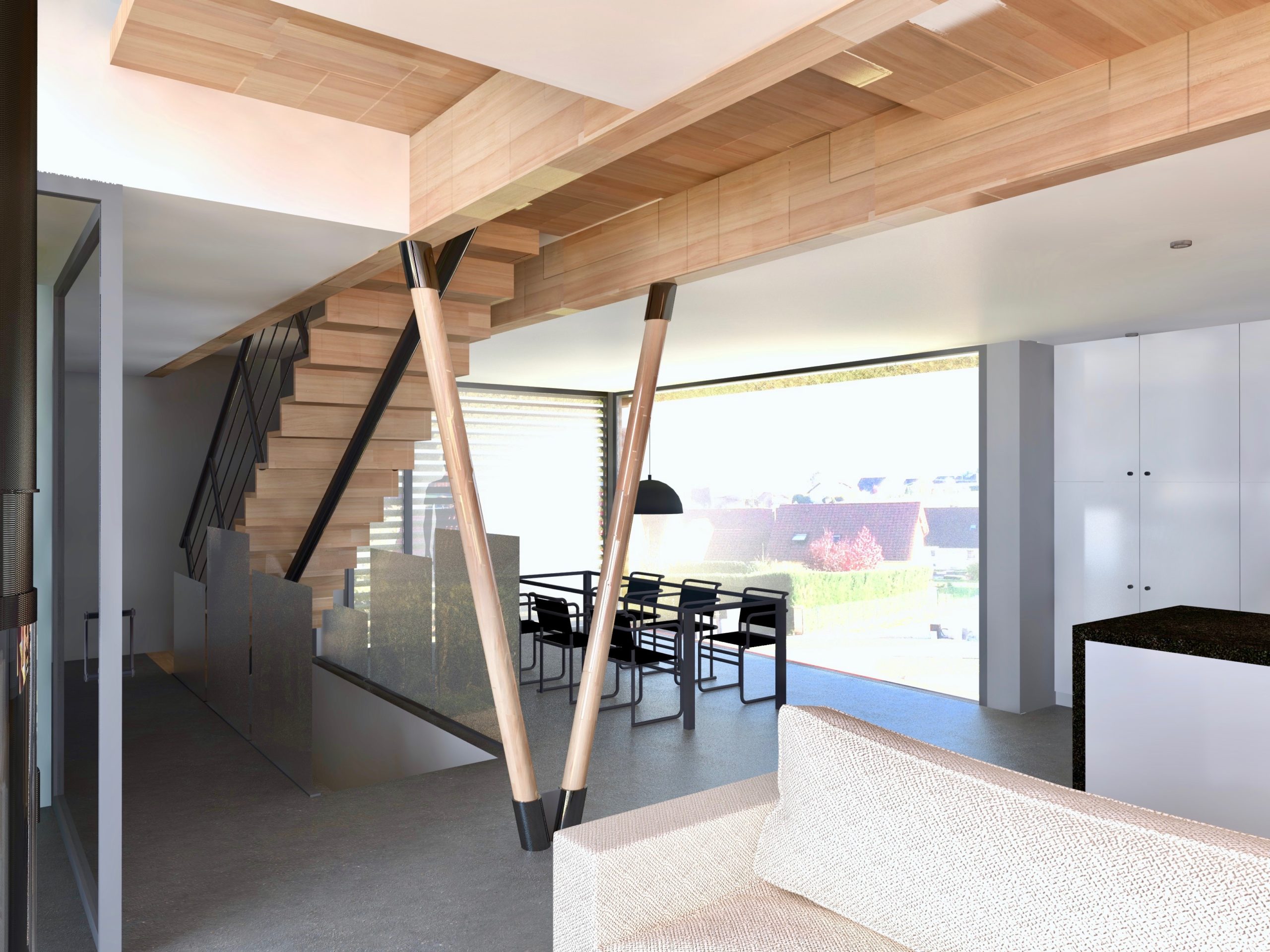 Matériaux de construction : murs préfabriqués de soutènement / socle béton / structure légère bois / Dalle massive (CLT) / structure secondaire acier