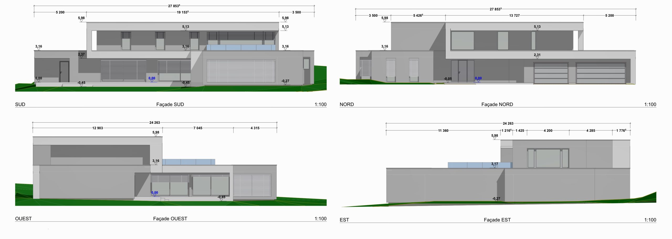 Matériaux de construction : murs préfabriqués de soutènement / socle béton / structure légère bois / Dalle massive (CLT) / structure secondaire acier